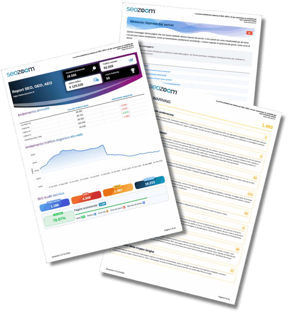 No. Puoi chiedere una sessione di confronto con i nostri specialisti. Analizzeremo insieme i risultati del report per chiarire ogni punto tecnico e definire con precisione le priorità della tua strategia di crescita.